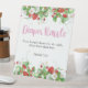 ¡Un bebe dulce está en camino! Este letrero de "Diaper Raffle" para la ducha de bebé tiene fresas preciosas, flores blancas y vegetación. Se complementa con una divertida tipografía de estilo de escritura a mano y se puede personalizar el texto y los detalles de colocación gráfica a sus necesidades específicas.