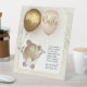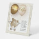 Tema combinado "Oh bebé el mundo espera" en una tipografía de oro cartografiada. Oso de peluche adorable en un gorra del chef adornado con acentos dorados y bufanda del chef. La carpeta de tarjetas Buffet se llena con globos dorados y blancos en el lado inverso, lo que hace que esto sea un valor porque se obtienen dos opciones de diseño en un producto que se puede mezclar y coincidir como se desee. El tema también se traslada al interior para más espacio para personalizar con más detalles de los elementos del menú.