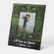 Un impresionante diseño irlandés verde y negro presenta nudos y halcones celtas.