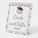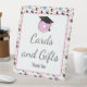 Desde los diseños clásicos de espuma hasta el patrón colorido de los dulces rociados. El patrón lúdico se mezcla con un donut acristalado rosado con un tapón de graduación como imagen principal en la parte delantera del cartel.