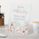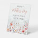 Customizable Dreamy Mother's Day Wildflowers Coral Script Table Pedestal Sign.