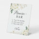 Ducha nupcial Mimosa Bar Rótulo Pedestal de mesa floral verde blanca. El tamaño predeterminado es 8 x 10 pulgadas, puede cambiarlo a otros tamaños. Para una mayor personalización, utilice la herramienta de diseño de Zazzle para modificar esta plantilla.