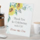 Bebé ducha Rótulo Pedestal "¡Gracias por celebrarlo con nosotros! Por favor tome One" con adorables girasoles acuáticos.