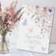 Letrero de barra de postres con la frase Un dulce final para un nuevo comienzo, perfecto para agregar un toque hermoso e invitador a tu celebración. El diseño muestra suaves flores silvestres y vegetación en acuarela, con mariposas rosadas y moradas revoloteando por todas partes para un ambiente ligero y romántico. La paleta de colores incluye rosados pálidos, rosa polvoriento, lila, lavanda, violeta y verdes frescos, creando un aspecto caprichoso inspirado en el jardín que se siente elegante y acogedor.