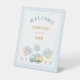 Add a charming display to your party setup with this dump truck first birthday pedestal sign! Featuring a cute truck carrying gifts and balloons with soft baby blue gingham pattern and dotted borders and the text “Rolling into ONE,” it’s perfect for decorating dessert tables, gift tables, or cake stands. A sweet and coordinated accent for a boy’s first birthday celebration.