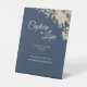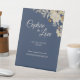 Este boda del Boho Dusty Blue Autumn captura el cartel del peatón del amor que combina un ambiente antiguo con un estilo retro bohemio de flor silvestre. Las elegantes y neutras flores de color beige sobre el polvoriento fondo azul marino, con su elegante tipografía caligráfica, permiten celebrar matrimonios formales pero salvajes y florales de estilo vintage.