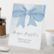 ¡El Dusty Blue Bow Baby Shower Diaper Raffle Pedestal Rótulo!