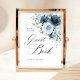 Elevate your wedding décor with this dusty blue and navy floral Guest Book sign, designed in an elegant fine-art watercolor style. Perfect for classic, modern, and garden weddings, this tabletop sign guides guests beautifully while tying together your day-of details. All wording is editable in the text fields; watercolor artwork and layout stay as shown.