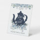 El amor es dulce, por favor, tómate un regalo con una tetera y un borde de flores azules. Colección coincidente en la tienda Adore Paper Co. Zazzle.