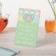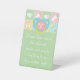Cuatro cuadrados en suaves pasteles de rosa, verde, azul y amarillo están enmarcados por una costura blanca como el diseño y decorados con adorables íconos de una botella, pañal, ganado y bib con la temática de un bebé. Un panel superpuesto verde tiene un patrón similar de marca de puntos para dar la apariencia de ser casero y un pacificador azul, rosa y amarillo se sienta en la parte superior. Una muestra inicial se sienta dentro del pacificador y el texto de muestra se sienta encima del panel de acento, ambos se pueden personalizar para su propia ducha de bebé, de modo que refleja el inicial del bebé y la información que desea compartir con sus invitados, como por ejemplo dónde dejar regalos o información sobre juegos o eventos especiales. No olvide visitar la colección completa de Baby's Quilt para más regalos y productos para una ducha de bebé o la pequeña de su vida.