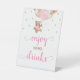 Los Balones de Oro Rosa y Rosa Teddy Bear Watercolor Teddy Bear Degustan Algunas Bebidas Bar Mesa Rótulo Baby Shower. El diseño presenta un elegante diseño de texto de estilo moderno. Para realizar cambios avanzados, seleccione la opción "Hacer clic en el personalizar más adelante".