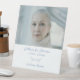 Honor your loved one with a beautifully designed pedestal tabletop funeral photo sign, created to serve as a heartfelt tribute during a funeral, memorial service, wake, or celebration of life. This elegant display sign features dusty blue floral detail. Add your cherished picture along with custom name and dates, offering a meaningful way to say in loving memory.