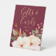 Guide guests with grace using this Elegant Monogrammed Gifts & Cards Tabletop Sign. Featuring blush and orange florals set on a deep burgundy wine background, this sign adds a refined touch to your gift table while keeping everything beautifully organized.
