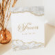 This is a Elegant White Gold Agate Party Favors Party Pedestal Sign!