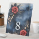 Elegante arreglo rosa con follaje dorado sobre un fondo de color azul oscuro. Un diseño elegante y decorativo con rosas rojas, hojas oscuras y acentos dorados sobre un fondo de color azul profundo y acuarela. El delicado marco dorado y la distribución equilibrada de las flores le confieren un encanto refinado y sofisticado. Perfecto para todo aquel que ame el elegante arte floral, los rosas románticos y los lujosos contrastes de color. Ideal para el arte en la pared, decoración en casa, accesorios de moda y regalos con un toque de sofisticación.