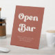 Abrir la señal de la mesa del boda de barra. Un tema de moda retro: adoptar este diseño tipográfico vintage y elegante para su papelería Boda, con un tema de color terracota. Fácil de mezclar y emparejar con nuestra papelería similar disponible en color rosa melocotón, naranja oxidado y azúcar marrón. Personalizable completamente los colores y fondos de texto.