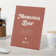 Signo de ducha de bebé de bar Momosa. Un tema de moda retro: adoptar este diseño tipográfico vintage y elegante para tu papelería Baby Shower, con un tema de color terracota. Fácil de mezclar y emparejar con nuestra papelería similar disponible en color rosa melocotón, naranja oxidado y azúcar marrón. Personalizable completamente los colores y fondos de texto.
