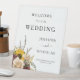 Elegante Boda floral blanco bienvenida Rótulo Pedestal
