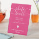 NewParkLane - Sofisticado Rótulo peatonal Boda personalizado con una elegante y divertida tipografía de manuscritos blancos/caligrafía con remolinos, un corazón pequeño y lindo, en un fondo rosa/fucsia. Un cartel sencillo pero de diseño y moda para que tus huéspedes compartan sus recuerdos en fotografías. Todos los textos se pueden ajustar fácilmente, a f.i. en números de cuadro, o para una estación de libros de visitas. Fácil de personalizar en Zazzle para un diseño personalizado. Todos los estilos, colores y tamaños de texto se pueden modificar para que se ajusten a su esquema de color boda, así como al color de fondo. Consulte esta colección para ver elementos coincidentes, como signos de bienvenida, etiquetas de agradecimiento, sanitizadores de mano y más. ¿Tienes deseos de diseño personal específicos? Siéntete libre de contactarme.
