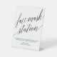 Mantén a tus invitados a salvo con una estación de mascarillas para que te den una máscara que ya no tiene. ¡Es una forma fácil de mantener a salvo a todos los huéspedes mientras celebran contigo! Este diseño presenta un texto de caligrafía y un mensaje opcional del invitado de honor.