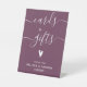 NewParkLane - Sofisticado Rótulo Pedestal de la Mesa de Regalos y Tarjetas de Bodas Personalizadas, con una elegante tipografía de manuscritos blancos y una caligrafía divertida con remolinos, un corazón pequeño y lindo, contra un fondo de borgoña/ciruela, perfecto para una boda en otoño.