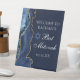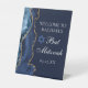 Elegante ágata azul marino y oro decora el lado de este moderno cartel de peatón de bienvenida Bat Mitzvah fiesta. El nombre de su hija está escrito en un hermoso guión formal bajo la Estrella de David. Perfecto para una moda, elegante familia judía celebrando la llamada de un chica a la Torá.