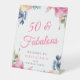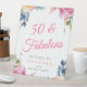Celebra un cumpleaños histórico con estilo con nuestro Signo de Bienvenida de los 50 Años! Con un colorido diseño floral de acuarela primaveral sobre un fondo blanco limpio, este símbolo peatonal es la manera perfecta de dar la bienvenida a sus invitados a su fabulosa celebración. Las elegantes letras de caligrafía dicen "50 y fabuloso", ¡haciendo saber a todos que estás listo para el fiesta! Lo mejor de todo es que nuestro signo de bienvenida es fácil de personalizar con su propio nombre y detalles, lo que lo convierte en una adición única a su decoración fiesta.