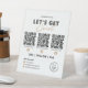 Conéctese con sus clientes de la manera más fácil con nuestro moderno símbolo de pedestal de código QR en medios sociales. Presenta un diseño elegante con 3 códigos QR para las diferentes plataformas de medios sociales con un encabezado 'Let's Get Social' en texto negro y una pizca de texto de escritura de caligrafía amarillo profundo. Este diseño bien equilibrado tiene todo perfectamente colocado, por lo que es fácil de leer y escanear. También hay espacio para su propio logotipo y para información de contacto adicional, incluyendo número de teléfono, dirección y sitio web. Personalizar con sus propios detalles aquí mismo en Zazzle!