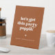 ¡Pongamos a este fiesta a la cabeza! Señal del boda de la barra de palomitas. Un tema de moda retro: adopta este diseño tipográfico vintage y elegante para tu papelería Boda, con un tema de color naranja quemado. Fácil de mezclar y emparejar con nuestra papelería similar disponible en color rosa melocotón, terracota y azúcar marrón. Personalizable completamente los colores y fondos de texto.