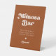 Señal de boda de la barra de Mimosa. Un tema de moda retro: adopta este diseño tipográfico vintage y elegante para tu papelería Boda, con un tema de color naranja quemado. Fácil de mezclar y emparejar con nuestra papelería similar disponible en color rosa melocotón, terracota y azúcar marrón. Personalizable completamente los colores y fondos de texto.