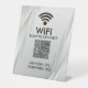 Elegante y minimalista símbolo de pedestal de mesa metálica de oro y plata para permitir a sus pacientes, clientes o invitados conectarse fácilmente a su red de Internet wifi. Puede cargar el código QR de su wifi y agregar cualquier otro texto, como el nombre de la red y la contraseña. Ideal para cualquier sala de espera, oficinas, hoteles o propiedades de alquiler de vacaciones. Haz lo tuyo y compra ahora.