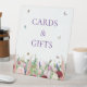Femenino y moderno, este rótulo peatonal de Cards & Gifts utiliza un diseño con un bonito jardín de flores color agua rosa y morado que incluye rosas, tulipanes, lavanda y eucaliptos con mariposas de colores vivos y abejas que vuelan por ahí. Puede personalizar de todos los detalles del texto y de la ubicación del gráfico a sus necesidades específicas.