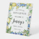 El cartel de bienvenida perfecto para una ducha de novia con tema de limón. Los lémulos enclavados en flores blancas y follaje verde se entrelazan con azulejos azules para crear un marco único.