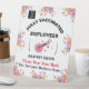 Empleados Personalizado de Logotipo de Negocio Máscara Vacunada Rótulo Pedestal le dice a todos que sus empleados en su negocio están vacunados y que sus clientes deben usar su máscara. Excelente información para cuando todos caminan por la puerta. Personalízalo con tu información.