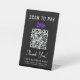 Simple señal de pedestal de mesa negra moderna para su negocio con un código QR Zelle para que los clientes puedan escanear los pagos. Añade tu código QR, nombre de negocio, número de teléfono y dirección de calle en una tipografía blanca simple.