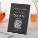 personalizado de moda tablero de tabletop negro para su negocio con un código Venmo para que los clientes puedan escanear los pagos móviles y su nombre o marca mostrada en un guión elegante de firma blanca. Cargue su código QR y agregue su información de contacto en letras blancas limpias.