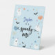 Tocante un lindo símbolo azul fantasma de Halloween 1er cumpleaños. señal de pedestal. Diseño moderno con temática de Halloween para un fiesta espeluznante! Este cartel de cumpleaños incluye telaraña, fantasmas, calabazas, murciélagos, arañas, hojas, maíz, estrellas y margaritas. ¡Este letrero es genial para las fiestas de cumpleaños de un niño!
