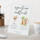 Esta carta de cócteles de moda destaca por su sencilla tipografía negra de más de 2 bebidas y sus ingredientes para su bar boda. Un dibujo de espresso martini y de mula moscovita le dan un toque fresco a su señal de peatón del menú del bar. Con los nombres de la pareja y la fecha de recepción.