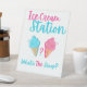 Elevar tu género revelar regalos con la estación de helados "What's the Scoop" (Qué es el escote) Género revelar Rótulo peatonal.