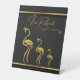 Pon una sonrisa en la cara de alguien con este hermoso y divertido cartel peatonal con tema de retiro. El diseño incluye una moda y una elegante familia de flamencos dorados de tres. El fondo es un elegante patrón negro con rayas de oro y el gracioso dicho dice "Estoy retirado es mi trabajo coleccionar flamencos". Disponible en varias opciones de tamaño. El cartel de la mesa es perfecto para un regalo humorístico del fiesta de la jubilación, regalo de los abuelos, regalo para los adultos mayores, amantes de los flamingos o cualquier persona que disfrute de su jubilación. Por favor, navegue por nuestra colección completa de tarjetas de retiro con temática flamingo, regalos, camisetas, decoración casera, y más. Solicitudes de diseño especiales aceptadas.