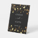 Un fondo negro clásico decorado con estrellas doradas. Con el texto: Tarjetas y regalos, gracias" Por fiestas de cumpleaños, boda, ducha de novia, fiestas de graduación.