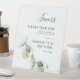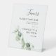 Personalizar nuestro moderno boda de follaje de eucaliptos en la mesa para sus golosinas. Presenta un diseño minimalista con vegetación acuática.