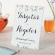 Un letrero de mesa de boda blanco y verde para el dinero y los regalos