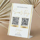 Exploración de efectos Gold para pagar Rótulo de negocio con espacio para dos códigos QR, tu nombre de negocio o logotipo y enlaces de medios sociales. Añade tu paypal, venmo, pago de manzanas, cashapp o cualquier otro método de pago electrónico. Con un elegante diseño en blanco y en oro falso, este símbolo de la mesa de pago sin contacto es perfecto para su salón, boutique o cualquier otro negocio.