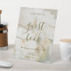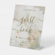 Invite a los huéspedes a dejar sus cálidos deseos con este elegante cartel de libro de invitados que incluye una fantástica foto de rosa blanca de Destei, descolorida bajo un overlay blanco para un ambiente romántico y atemporal. La palabra "libro de invitados" está bellamente escrita en dos líneas en un guión fluido, seguida de un sincero agradecimiento por el mensaje de amor. En la parte inferior hay un espacio personalizado para los nombres de la pareja, lo que le convierte en un elegante complemento de la decoración boda. Perfecto para celebraciones en el jardín y bodas sofisticados.