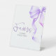 Parte de la elegante suite de invitados color púrpura, este moderno cartel de velador con ducha de novia (o ducha de bebé, fiesta de compromiso, etc.) le da un toque elegante y coordinado a su celebración. Con una elegante cinta de color morado claro a lo largo del borde, es perfecto para guiar a los invitados a la mesa de preferencias, este cartel reúne belleza y función, un pequeño pero significativo detalle que une tu decoración a la perfección.