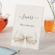 Un fondo de color marfil, decorado con un lazo grande. Texto: Favor. ¡Por favor, tome uno!