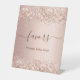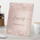 Un falso rosa de fondo metálico dorado con un falso polvo purpurina. Los favores se escriben con una escritura de estilo moderno con letras a mano con toques.