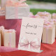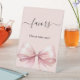 Fondo rosa, decorado con un lazo grande. Texto: Favor. ¡Por favor tome uno!