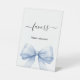 Fondo blanco elegante, decorado con un lazo azul grande. Texto: Favor. ¡Por favor, tome uno!